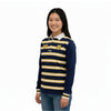Shop online for custom rugby jerseys with long sleeves and collar in the style of traditional Canturbury jumpers at Coast 2 Coast Sports. This design has stripes around the body and cuffs. Easily customise the colours and add logos on this example template. You can upload your school emblem or mascot, or a big school name or team name, or add the year number of your graduation on the bigger blank area on the back.